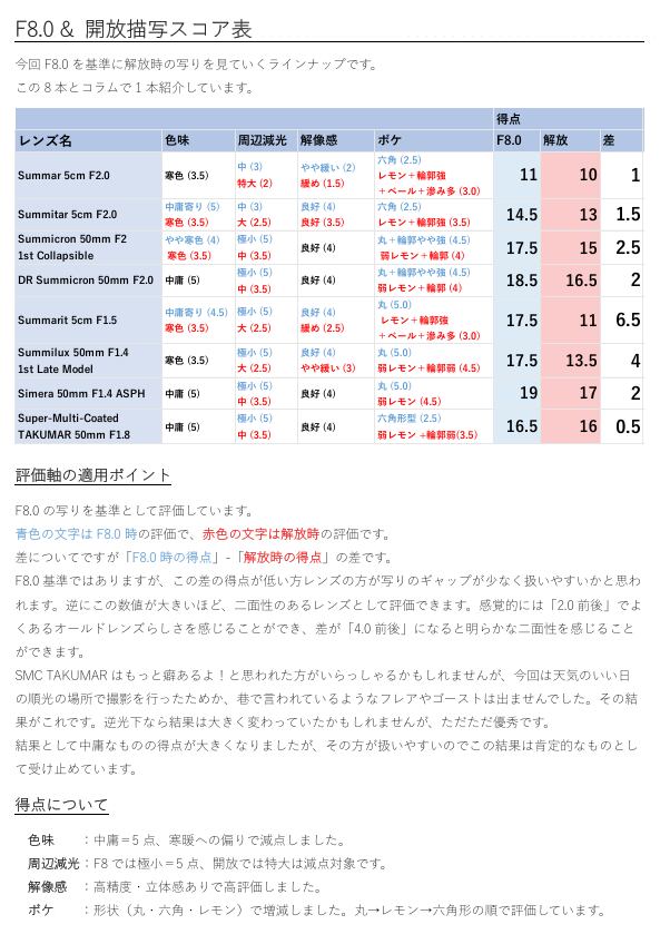 よくレンズを紹介している本はありますが、解放での描写や1段絞った描写を1~2枚提示して解放の描写がすごいと書かれているものを散見いたします。